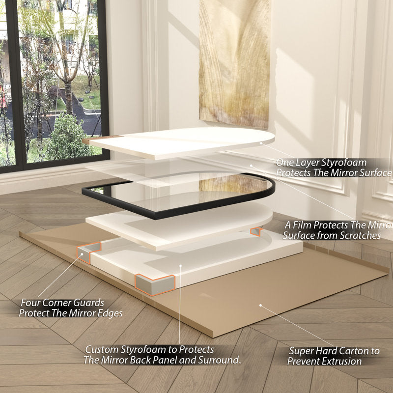 Professional packaging: Each mirror is manufactured to a proprietary standard and secured with custom-designed thick foam and sturdy corner protectors in a cardboard box. Before shipping, it undergoes rigorous testing, including drop and impact tests, to ensure you receive the perfect mirror.