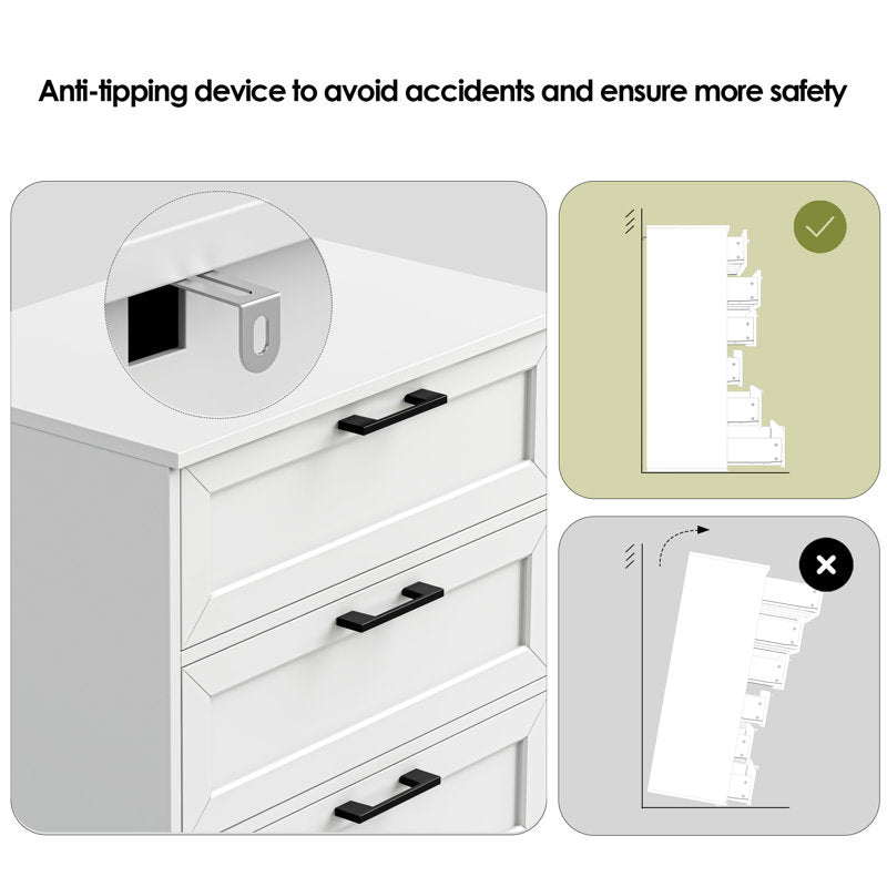 - Steady Dresser: This white wood dresser is an upgraded version with a trapezoidal design and an anti-tipping device, providing extra stability and security. The tabletop depth is 14.6inch and the bottom depth is 16.9inch.