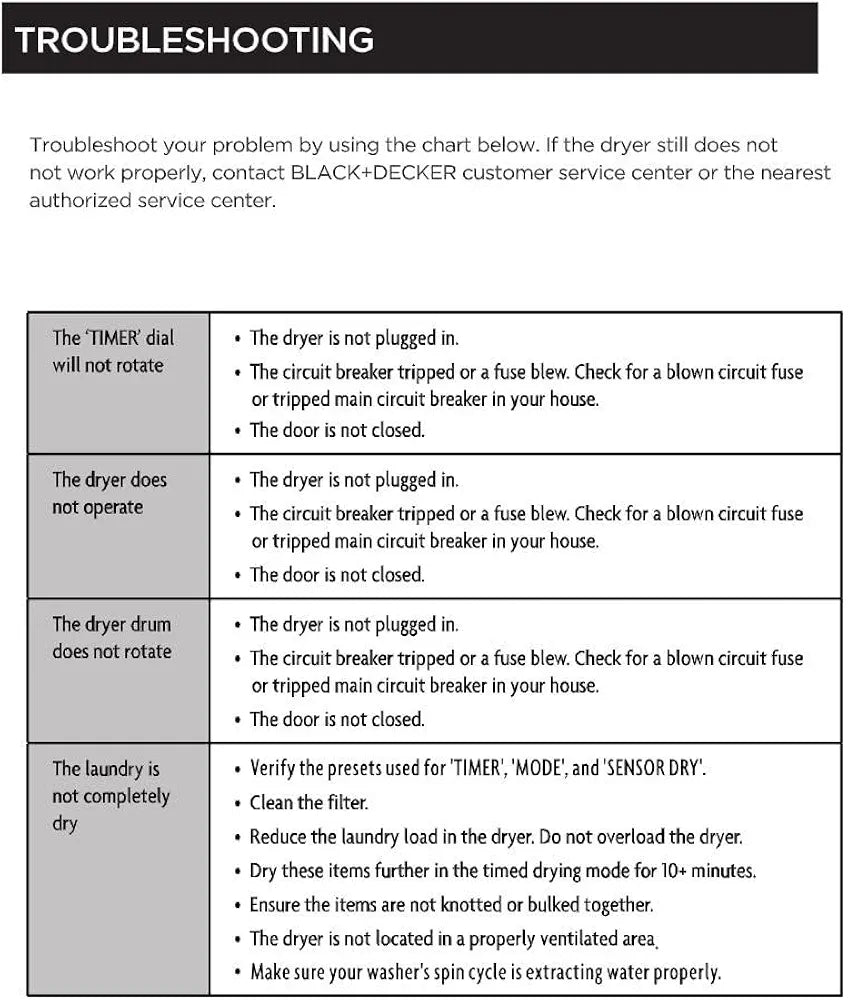 Model Name BLACK+DECKER BCED37 Compact Dryer for Standard Wall Outlet, Small, 4 Modes, Load Volume 13.2 lbs.