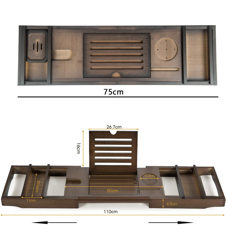 Bathroom Spa: This bamboo bath tray for the bathtub comes equipped with a telephone, a candle holder, two removable spa trays, and a tablet/book holder, and also includes a free soap dish. Treat yourself to the most relaxing bathing experience ever and enjoy a luxurious spa treatment at home.