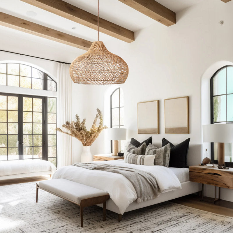 Bring a touch of natural warmth and handcrafted charm to your home with the Kloe Brown Rattan Pendant Light. Handwoven from sustainable rattan and finished with a polished brown sheen, this medium-sized rattan pendant light beautifully blends organic texture with a modern silhouette. Perfect for the living room, dining room, or bedroom, the Kloe pendant light adds a soft, inviting glow that complements modern farmhouse, boho, coastal, and Scandinavian interiors. Its airy dome shape and intricate woven pattern create a timeless piece—whether hung alone or in multiples over a kitchen island or dining table. This rattan pendant light pairs perfectly with neutral tones, natural wood accents, and soft textiles, offering an ideal balance of relaxation and sophistication. Available in a medium size that fits effortlessly into smaller and open-plan spaces, it's a versatile design that elevates the ambiance of any room.
