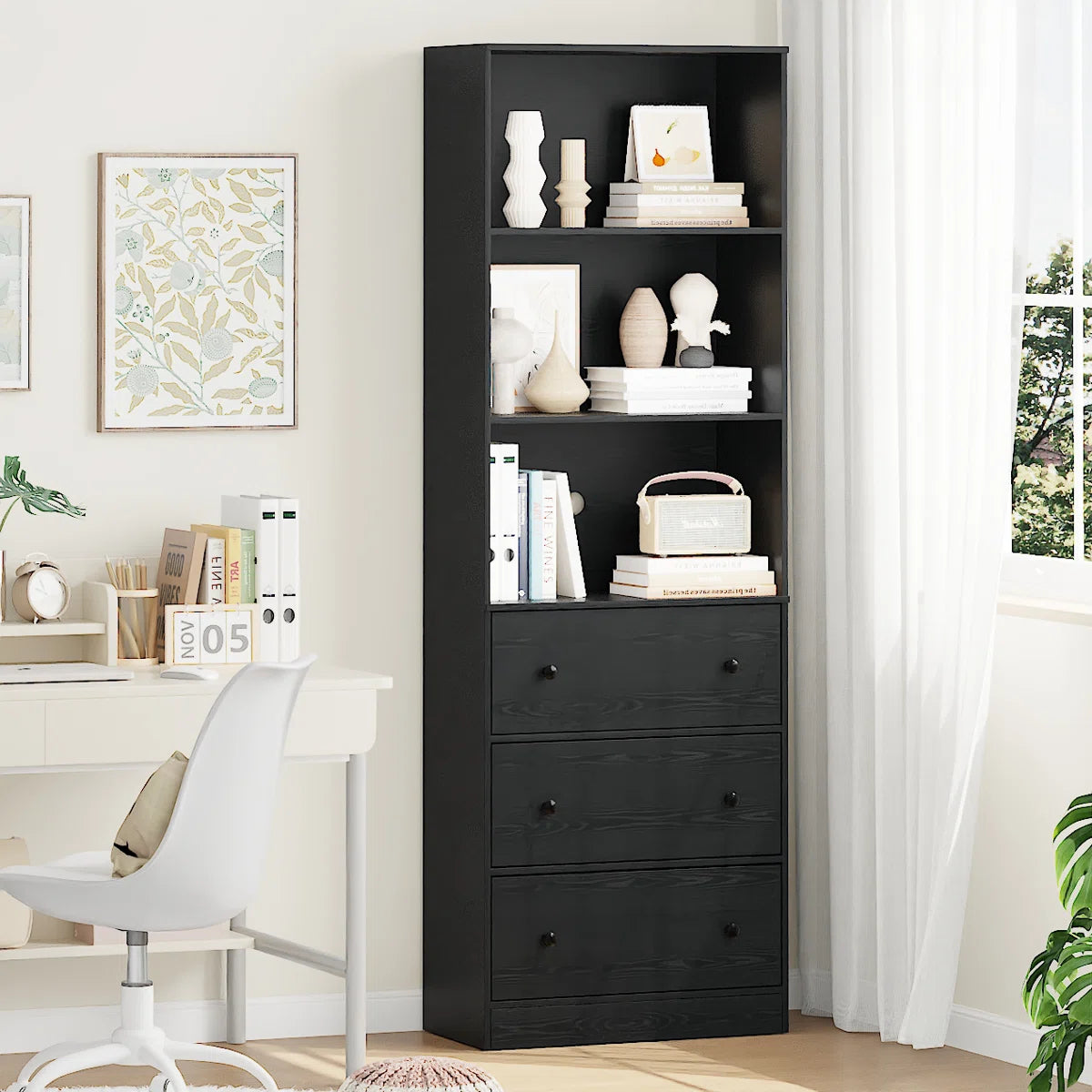 70.9'' H X 23.6'' W Standard Bookcase Cabinet with 2 Open Shelves and 3 Drawers