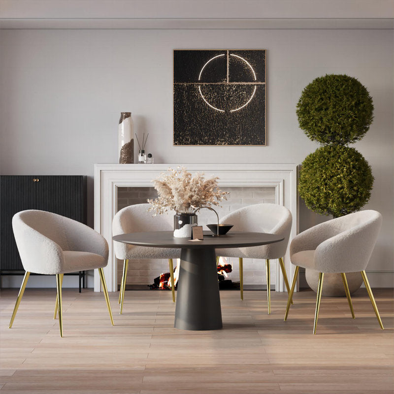 With classic design and modern boucle fabric upholstery, this dining chair with its clean lines is an easy addition to your living space. This chair is covered in rich and skin-friendly material, and is soft to the touch. The seat and the back of this chair is padded with high density foam, offering indulgent comfort.
