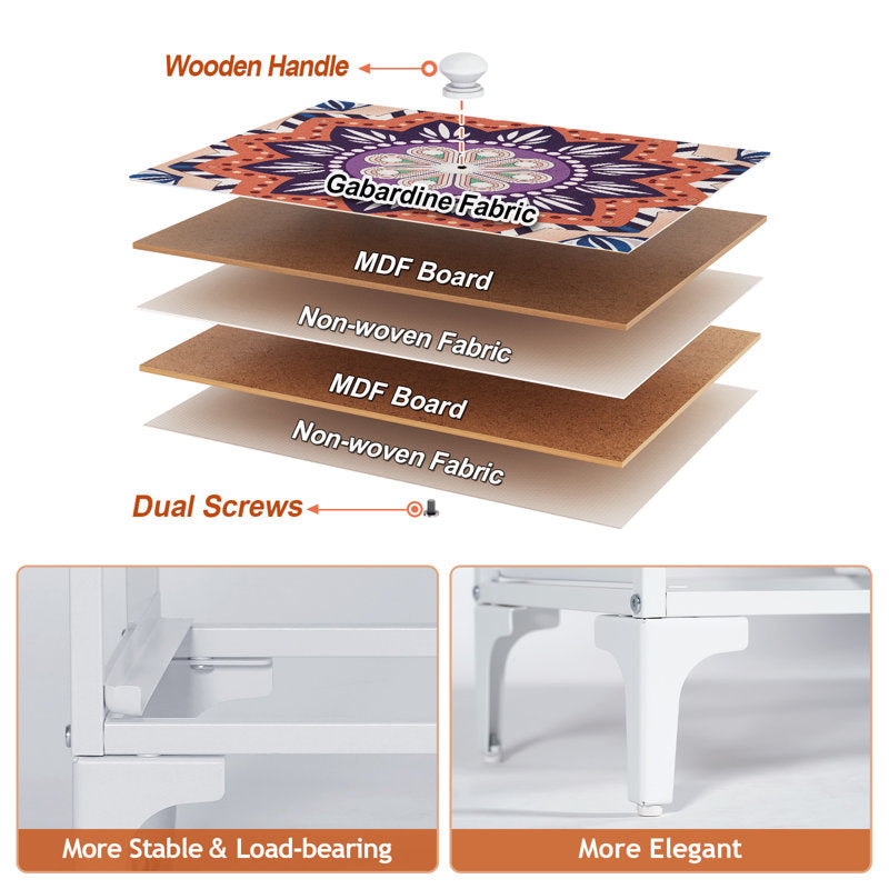 Matériaux de haute qualité : bois d'ingénierie, acier allié, tiroirs en tissu imprimé de haute qualité