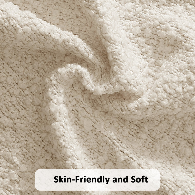 Tissu bouclé duveteux : La structure est revêtue d’un tissu bouclé à l’aspect nuageux, offrant une sensation de douceur et de confort ainsi qu’une texture riche. Ce lit apporte une touche de fraîcheur et de sérénité à votre chambre, insufflant une élégance inspirée par la nature qui vous permettra de vous détendre et de dormir avec style.