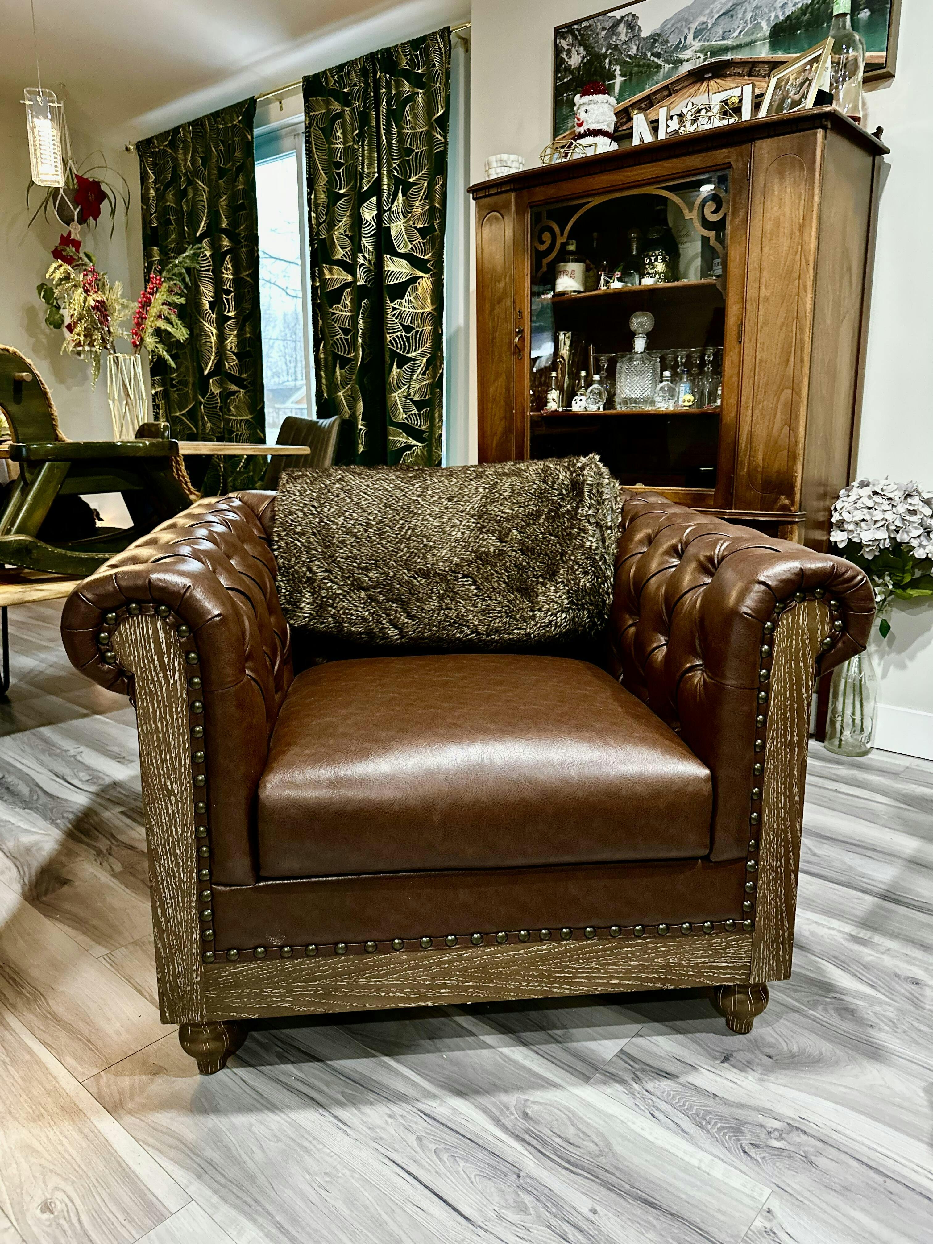 NAIL HEAD TRIM: This chair doesn't skimp on its finishing details. Expertly crafted, this piece features tasteful nailhead detailing around its frame. Each nail head is individually applied for a beautiful handcrafted touch.