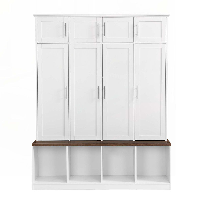 Four large cabinets: Four large storage cabinets at the bottom greatly improve storage capacity, and built-in metal hooks for hanging coats and backpacks make tidying and organizing easy.