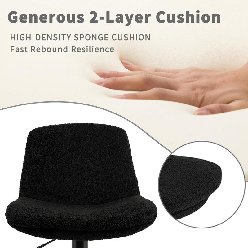 This set is perfect for those who want a combination of decoration and function in their space. The smooth swivel design adds flexibility and freedom of movement, making conversations and multitasking a breeze. Built for comfort, each stool features a high-resiliency foam seat and a supportive backrest, both wrapped in soft boucle for an inviting, modern look. The ergonomically curved back and integrated footrest encourage relaxed posture and help reduce body strain, ideal for longer sitting sessions. Thoughtfully removable seat cushion cover is machine-washable, keeping your stools looking fresh with minimal effort. With an adjustable seat height ranging from 25" to 33.5", it’s easy to find your comfortable fit. Whether you're refreshing your kitchen island, adding extra seating to your living space, or styling a chic café or bar, this set brings modern elegance and practical comfort to any space.