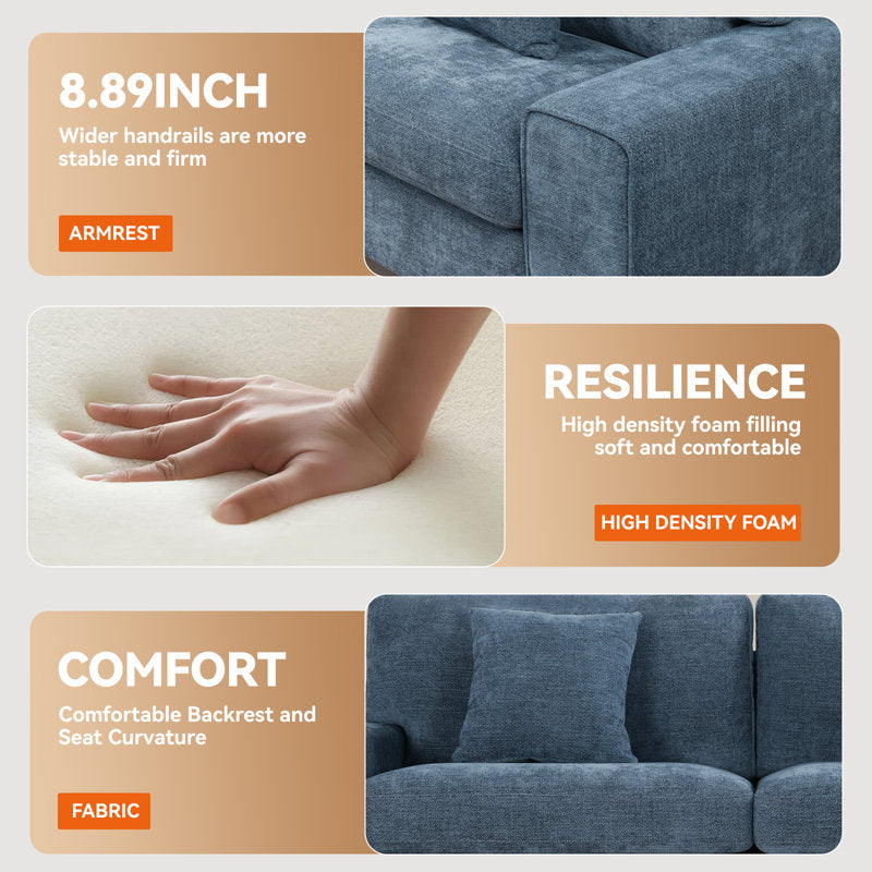 Karlita 71.5"" Chenille Sofa Square Arms Sofa Modern Style Loveseat With 2 Toss Pillows