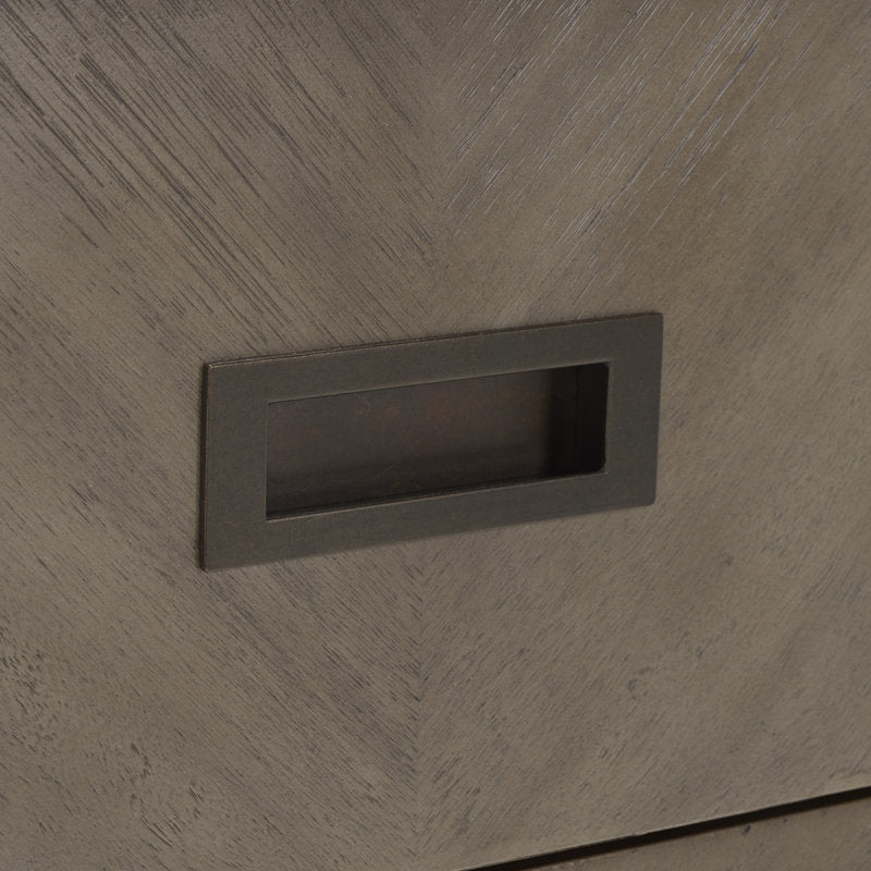 This nightstand is a sophisticated fusion of mid-century chic and contemporary classes. Its herringbone-inspired pattern overflows with charisma, while two drawers provide ample storage beside a bed or sofa.