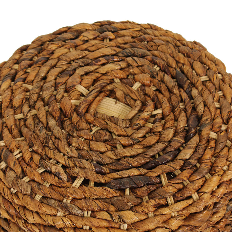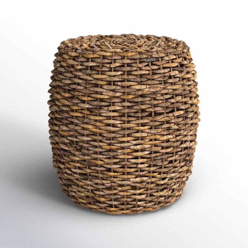 This drum-shaped end table welcomes some breezy, coastal style to your home. It's made with an engineered wood base, and is wrapped in a woven natural material that has plenty of texture and warmth. And since this table measures just 19" wide, it's just the right size to slide next to your sofa or reading chair. It has room for a petite table lamp, or a small tray to hold your mug of tea and a scented candle.