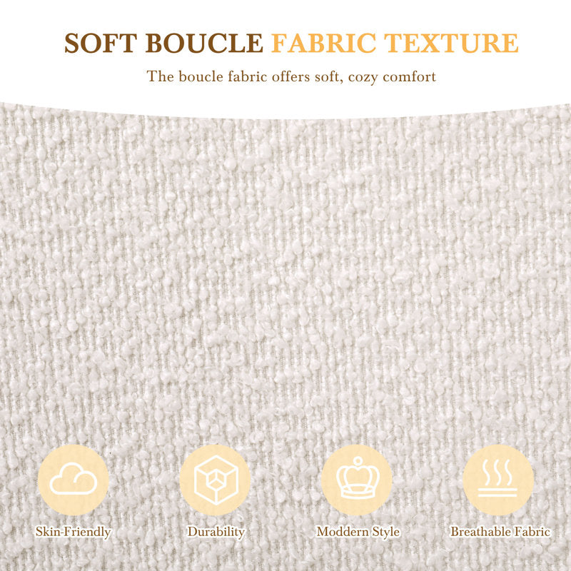 Upholstered Platform Bed with Boucle Fabric,Curve-Shaped Design Headboard, White, Easy Assembly King Size White